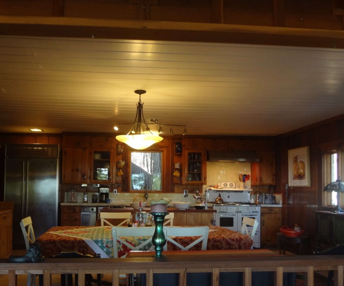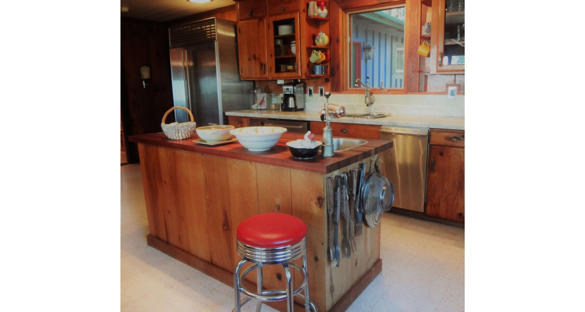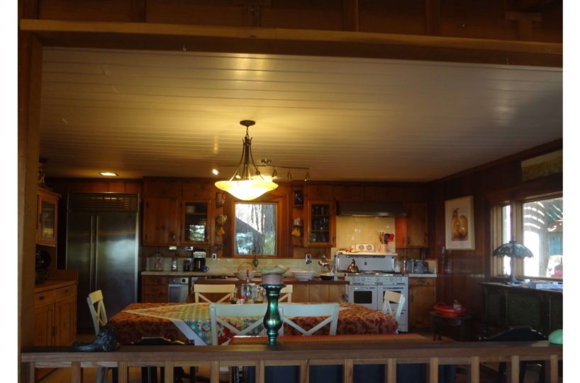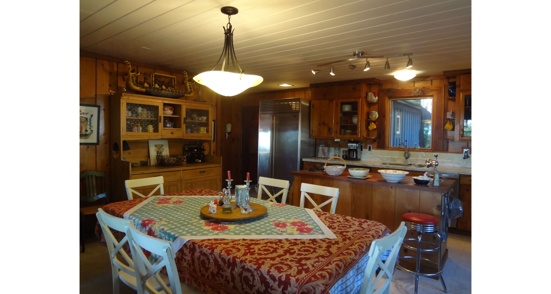 The main house has a spacious living room with wood burning stove, a wall of windows capturing the blue water view and a large deck for indoor/outdoor living. A wonderful country kitchen offers a vintage Wedgewood range, marble counters, butcher block topped island, redwood cabinets, Subzero refrigerator, huge hutch and cozy brick lined corner with propane stove. The master suite has its own sitting room, a bath designed with privacy in mind and a dressing room. A second bedroom has its own bath with a walk-through dressing room and opens to a wraparound deck with spa.