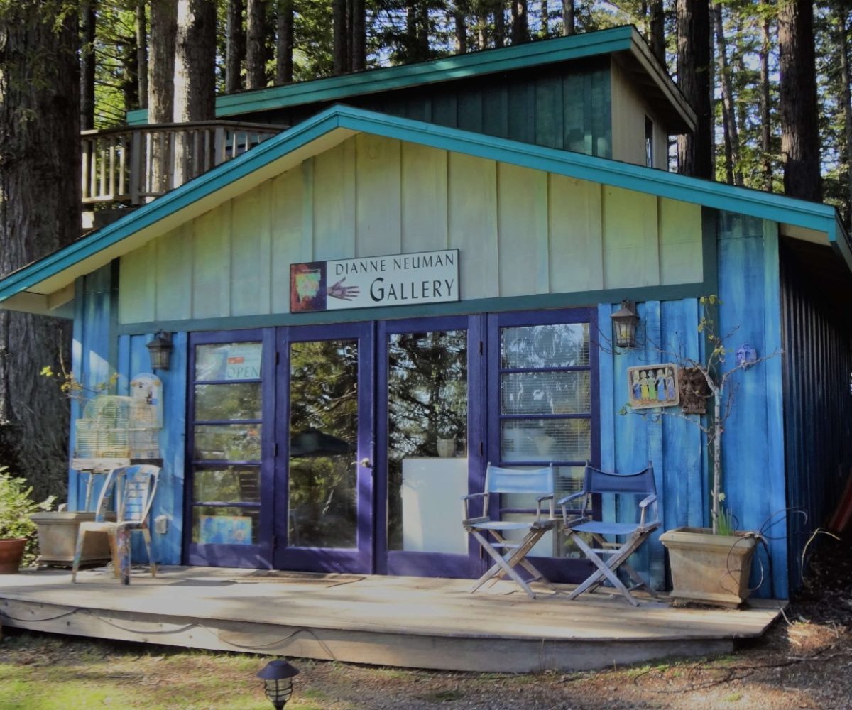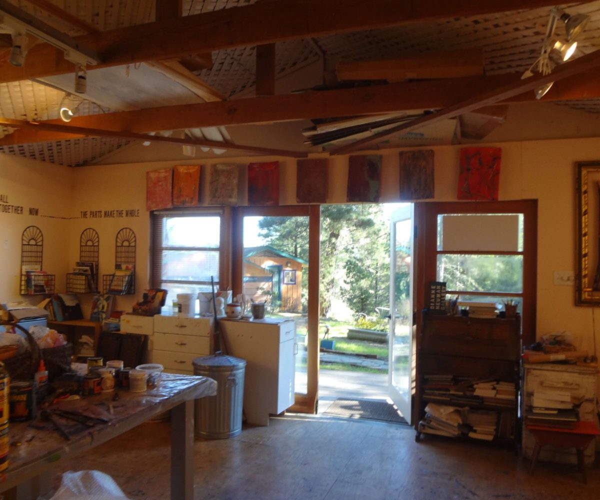 The artist’s studio is a total delight with wonderful light, ample storage and its own second story office with a deck that redwoods grow through.