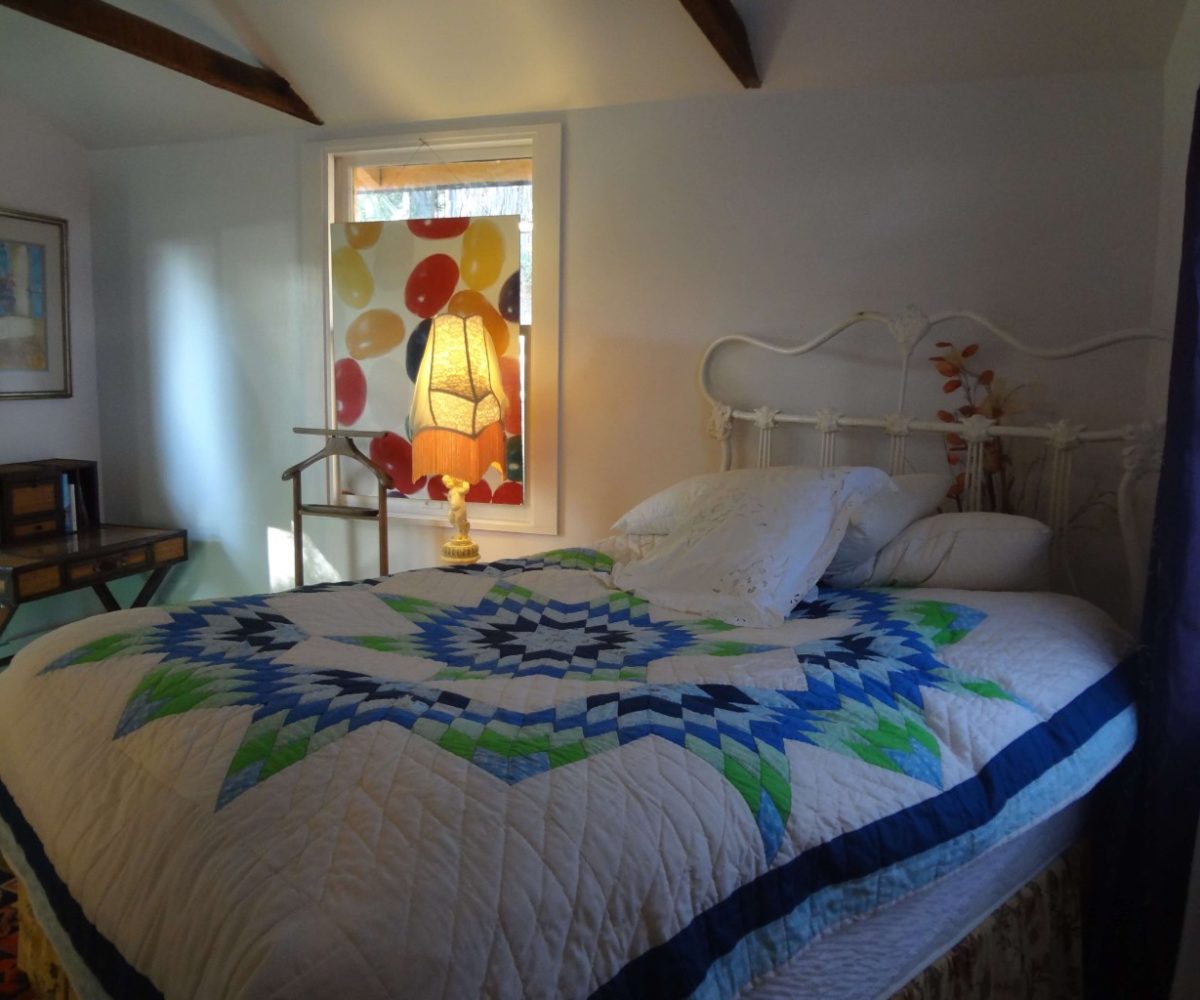 To the package, add a playhouse with a touch of whimsy, a fully fenced garden area with fruit trees and magical redwoods throughout to complete a perfect compound that sleeps 9 in a private setting.