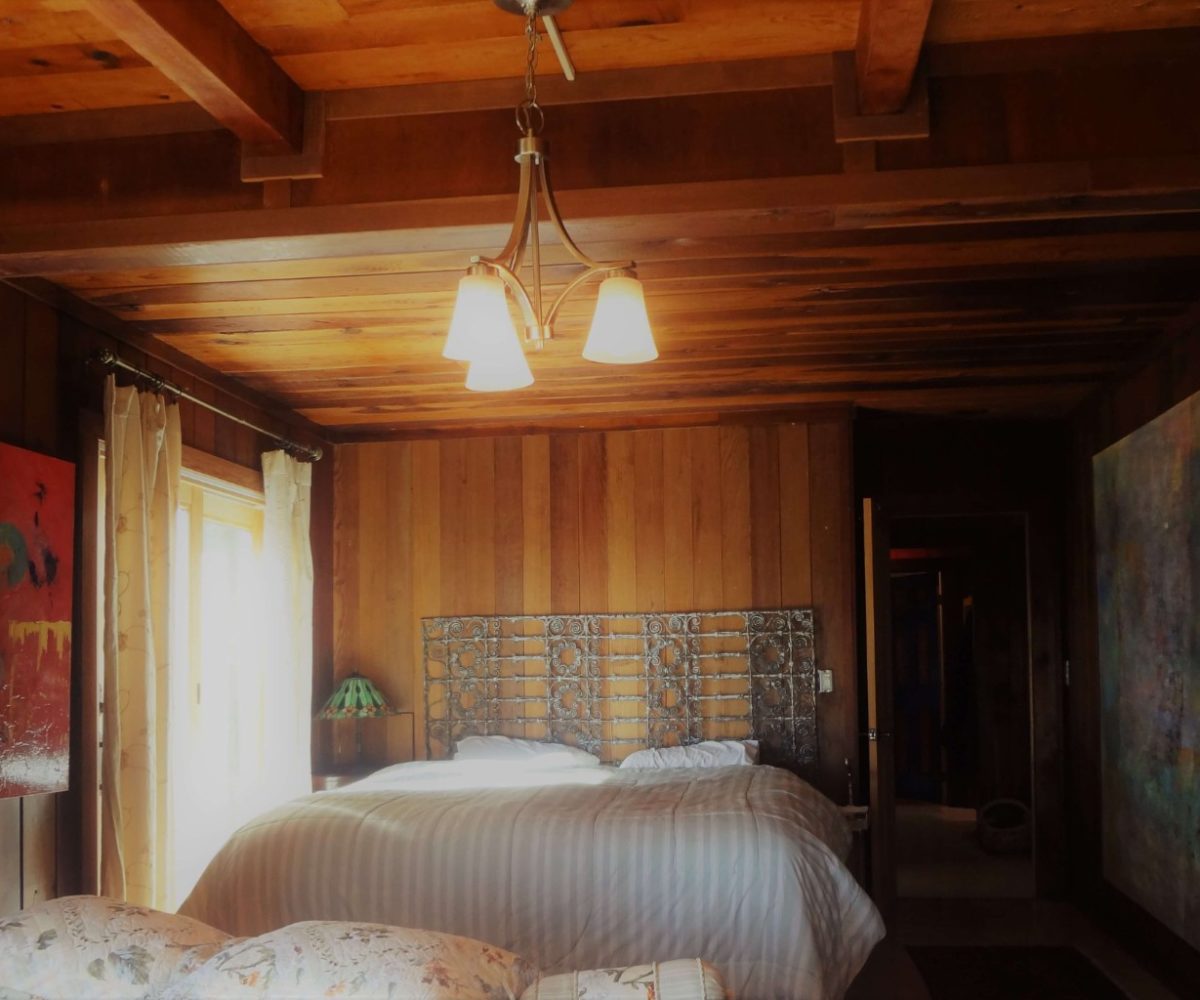 From the spa, follow the boardwalk to the “coach” bedroom with bath nestled in a redwood grove all its own.